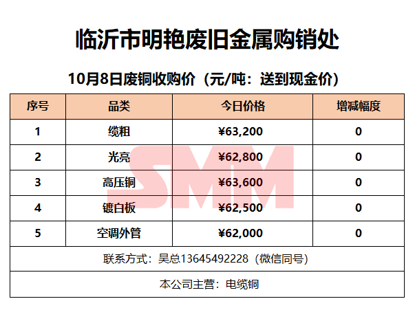 10月8日临沂明艳废旧金属 废铜收购报价