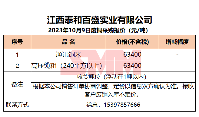 今日江西泰和百盛实业 ,废铜采购报价已更新,有货的朋友欢迎联系我们!