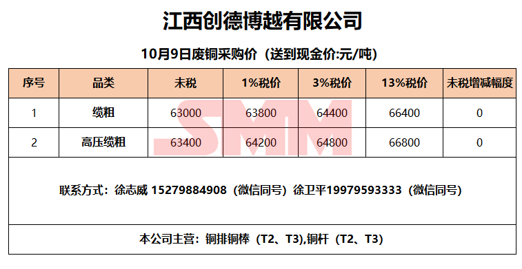 今日江西创德博越,废铜采购报价已更新,有货的朋友欢迎联系我们!