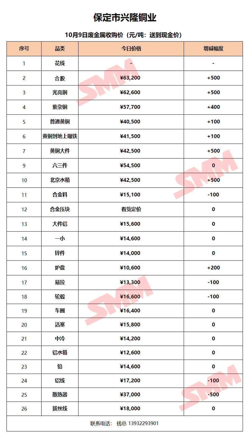 今日保定兴隆铜业,废金属收购报价已更新,有货的朋友欢迎联系我们!