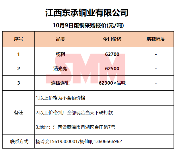 今日江西东承铜业/博升铜业 废铜采购报价已更新,有货的朋友欢迎联系我们!