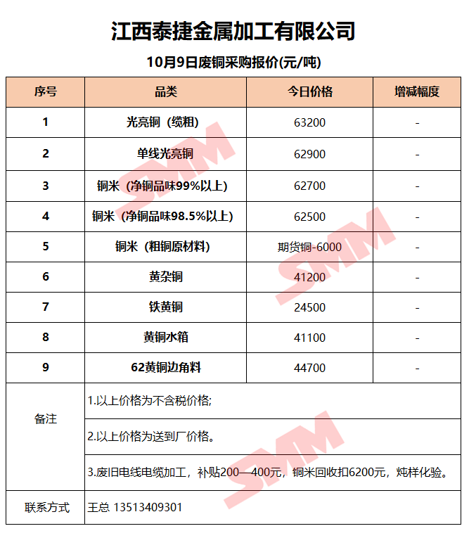 今日江西泰捷,废铜采购报价已更新,有货的朋友欢迎联系我们!