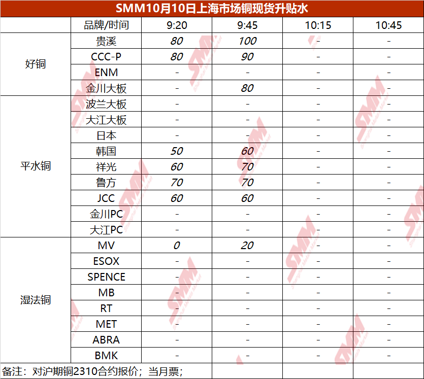 10月10日上海市场铜现货升贴水(第二时段)【SMM价格】