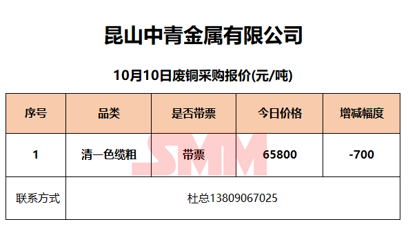 10月10日昆山中青 废铜采购报价