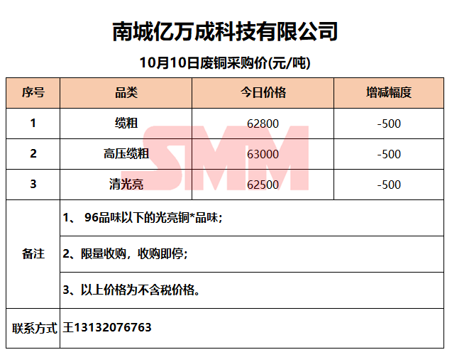 今日江西亿万成 废铜采购报价已更新,有货的朋友欢迎联系我们!