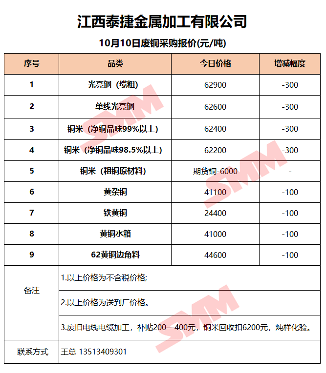 今日江西泰捷,废铜采购报价已更新,有货的朋友欢迎联系我们!
