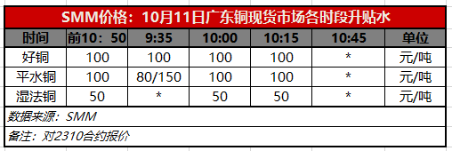 10月11日广东铜现货市场各时段升贴水(第三时段10:15)【SMM价格】