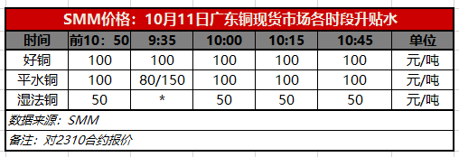 10月11日广东铜现货市场各时段升贴水(第四时段10:45)【SMM价格】