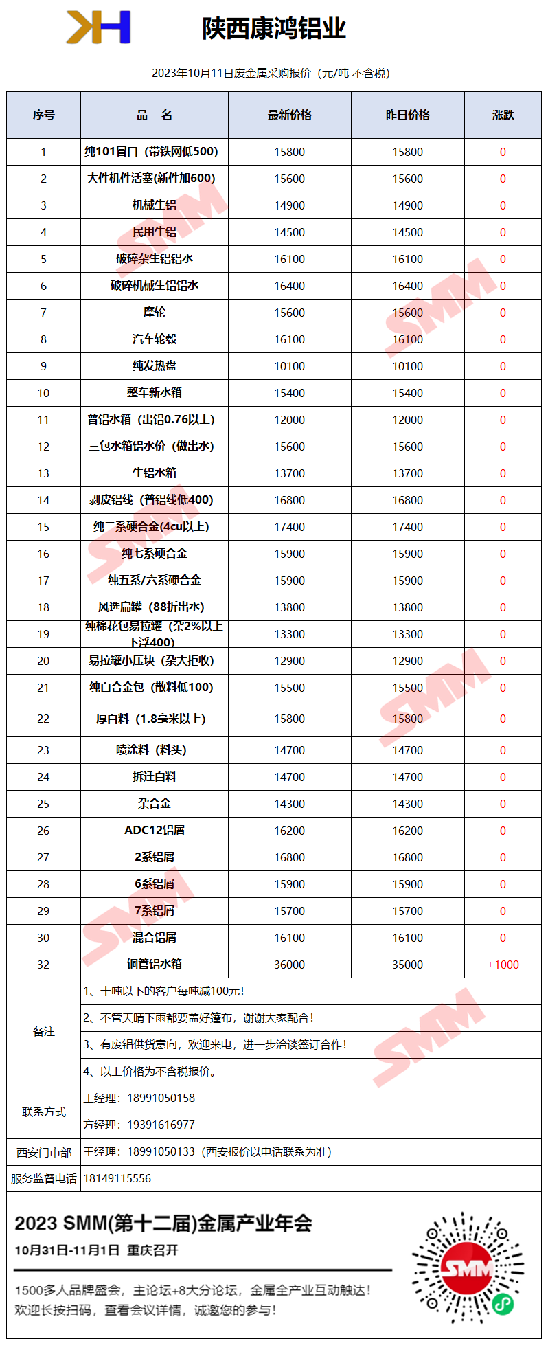 今日陕西康鸿铝业 废金属采购报价已更新,有货的朋友欢迎联系我们!