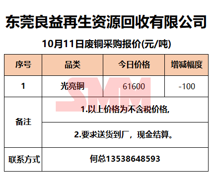 10月11日东莞良益 废铜采购报价