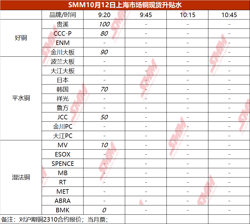10月12日上海市场铜现货升贴水(第一时段)【SMM价格】