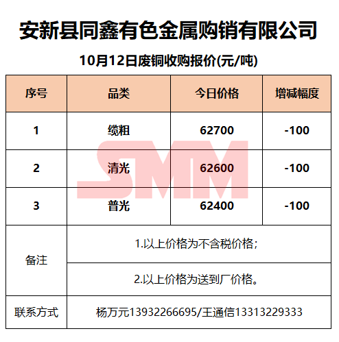 10月12日安新同鑫 废铜收购报价