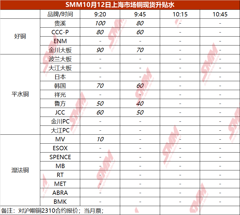 10月12日上海市场铜现货升贴水(第二时段)【SMM价格】