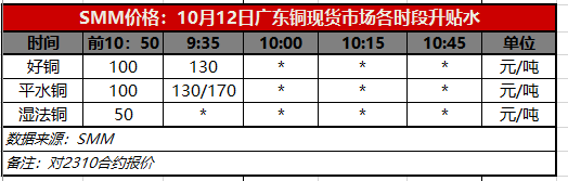 10月12日广东铜现货市场各时段升贴水(第一时段9:30)【SMM价格】