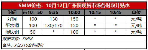10月12日广东铜现货市场各时段升贴水(第二时段10:00)【SMM价格】