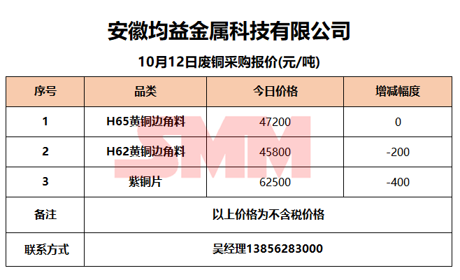 今日安徽均益,废铜采购报价已更新,有货的朋友欢迎联系我们!