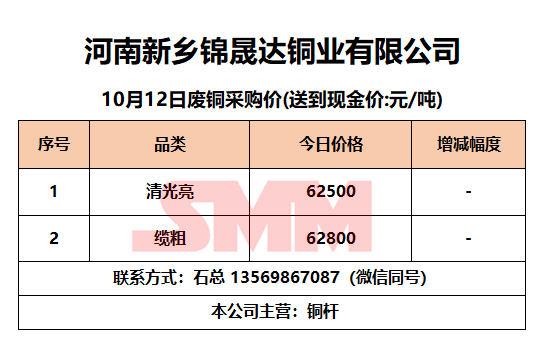 10月12日河南锦晟达 废铜采购报价