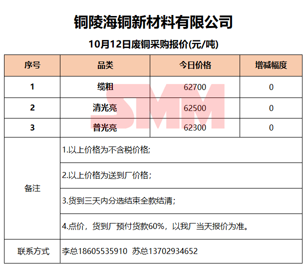 今日铜陵海铜,废铜采购报价已更新,有货的朋友欢迎联系我们!
