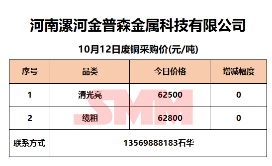 10月12日河南金普森 废铜采购报价