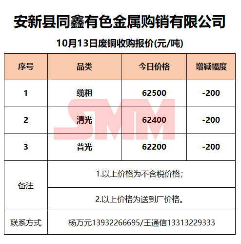 今日安新同鑫,废铜收购报价已更新,有货的朋友欢迎联系我们!