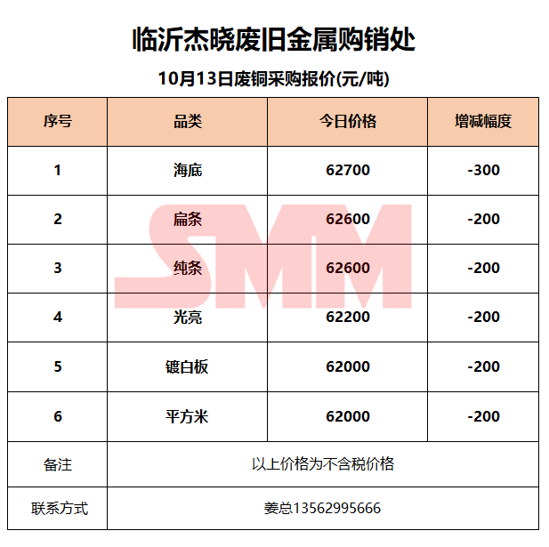 10月13日临沂杰晓 废铜采购报价