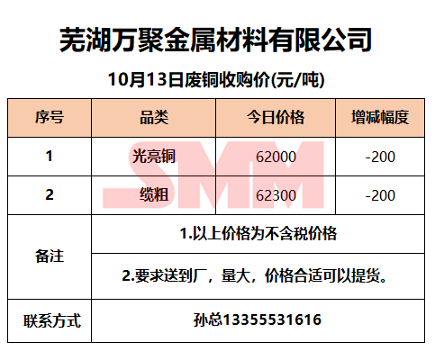 今日芜湖万聚金属,废铜收购报价已更新,有货的朋友欢迎联系我们!