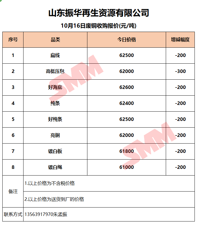 今日山东振华,废铜收购报价已更新,有货的朋友欢迎联系我们!