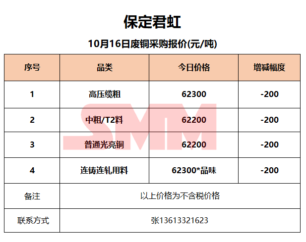 今日保定君虹,废铜收购报价已更新,有货的朋友欢迎联系我们!
