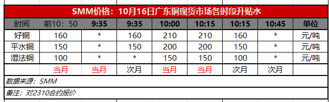 10月16日广东铜现货市场各时段升贴水(第三时段10:15)【SMM价格】