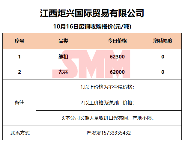 10月16日江西炬兴 废铜收购报价