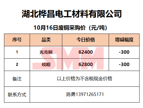 10月16日湖北桦昌 废铜采购报价