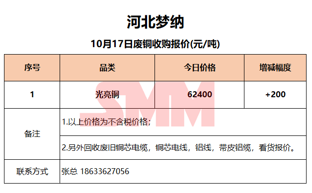 10月17日河北梦纳 废铜收购报价