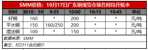 10月17日广东铜现货市场各时段升贴水(第二时段10:00)【SMM价格】