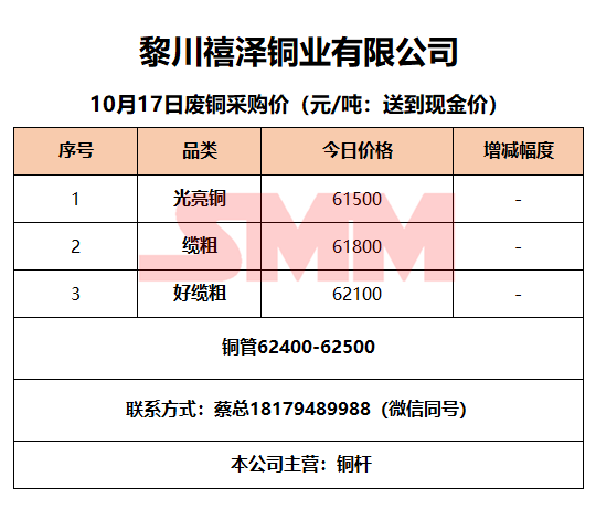 10月17日黎川禧泽铜业 废铜采购报价