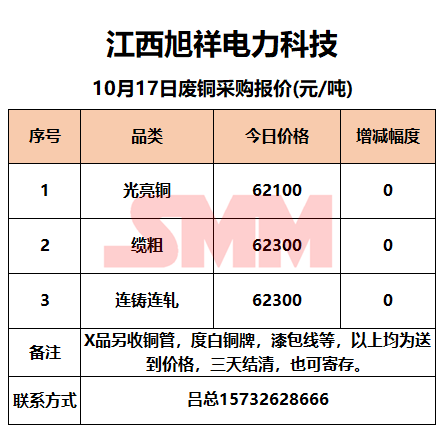 10月17日江西旭祥 废铜采购报价