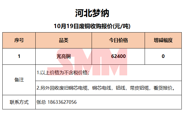 10月19日河北梦纳 废铜收购报价