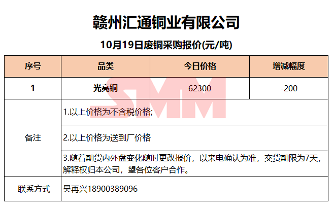 今日赣州汇通,废铜采购报价已更新,有货的朋友欢迎联系我们!