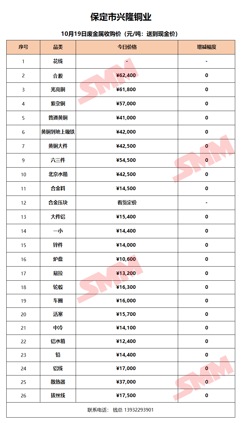 今日保定兴隆铜业,废金属收购报价已更新,有货的朋友欢迎联系我们!