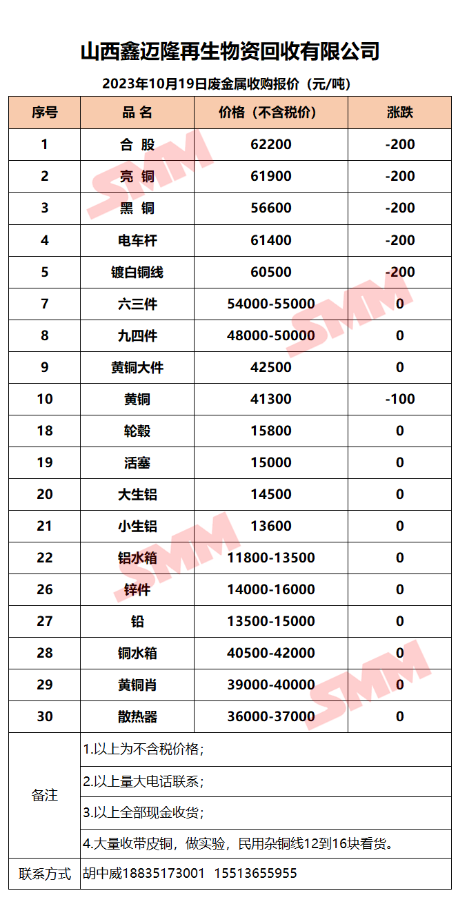 今日山西鑫迈隆,废金属收购报价已更新,有货的朋友欢迎联系我们!