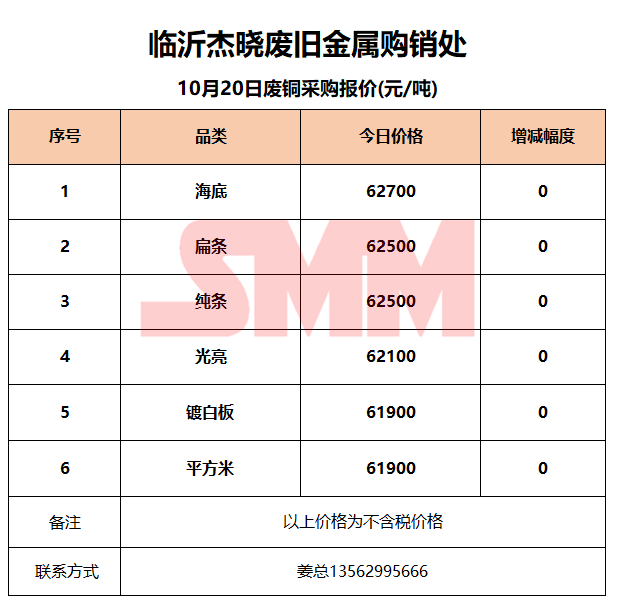 10月20日临沂杰晓 废铜采购报价
