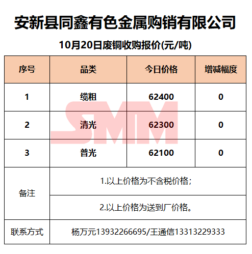 10月20日安新同鑫 废铜收购报价