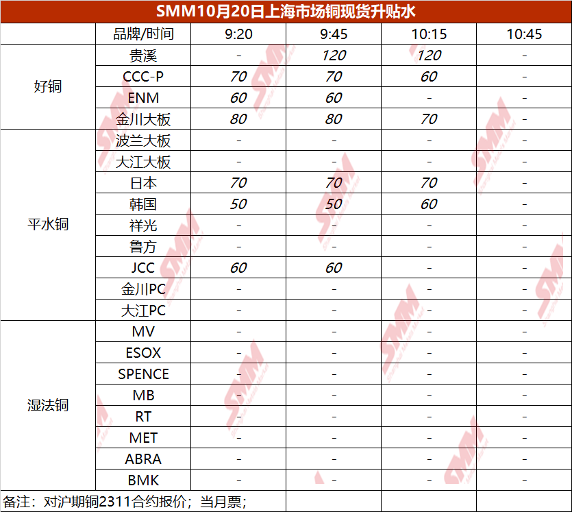10月20日上海市场铜现货升贴水(第三时段)【SMM价格】