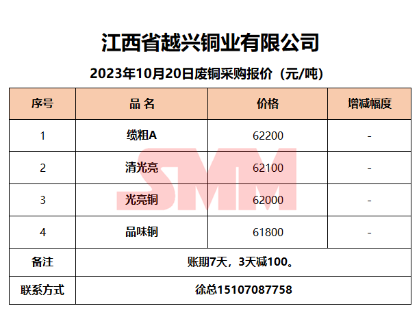 10月20日江西越兴 废铜采购报价