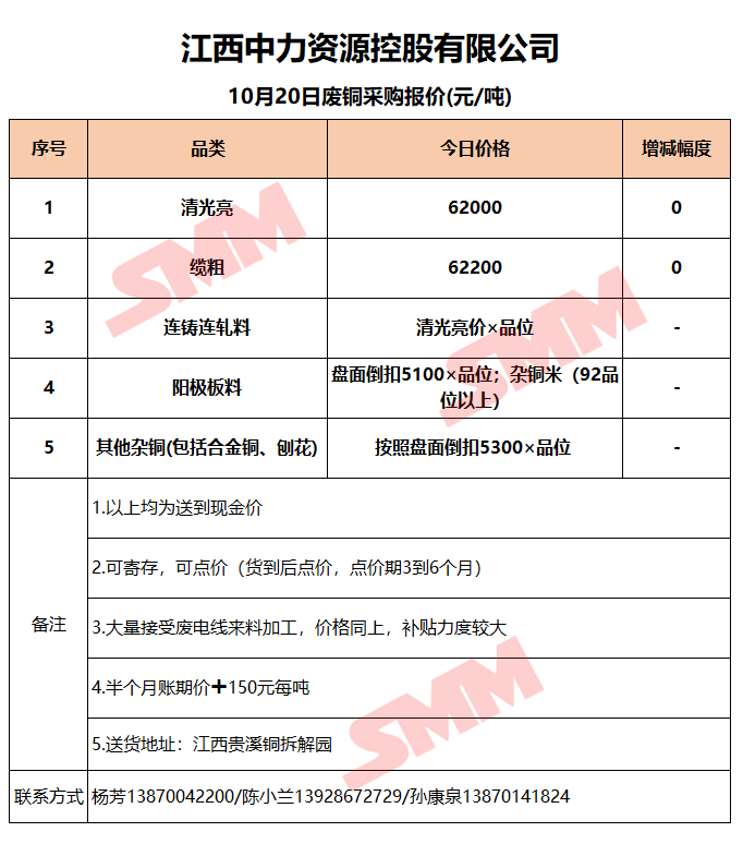 10月20日江西中力 废铜采购报价