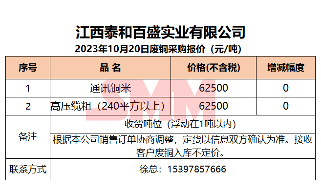 10月20日江西泰和 废铜采购报价