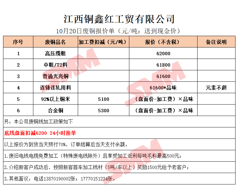 10月20日江西铜鑫红 废铜采购报价