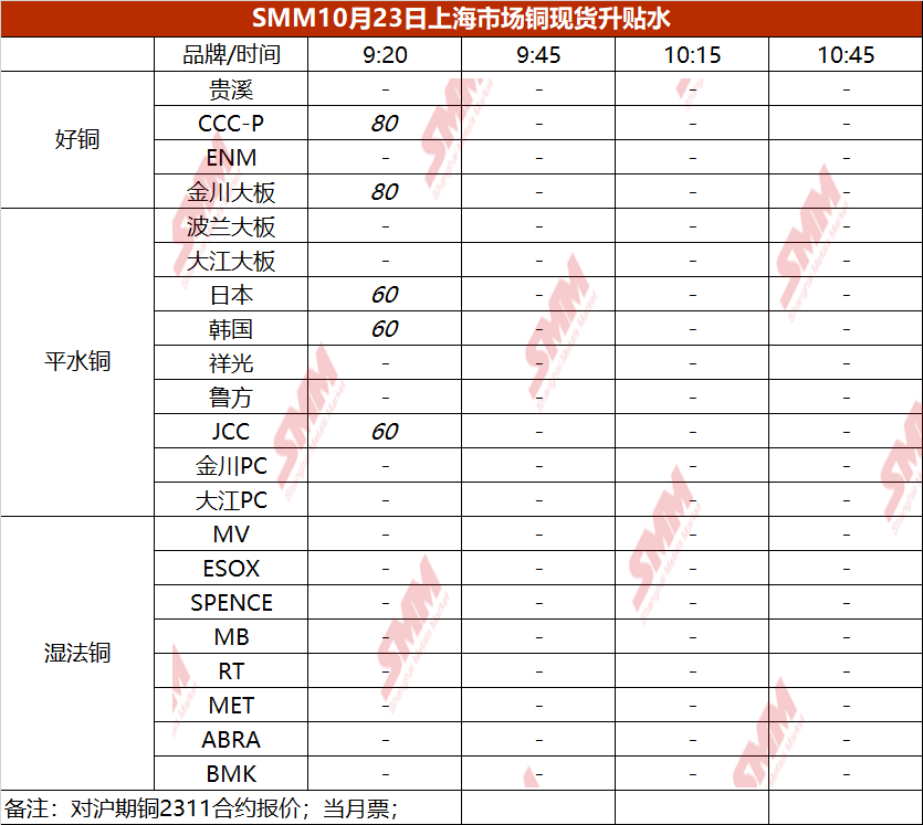 10月23日上海市场铜现货升贴水(第一时段)【SMM价格】