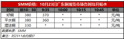 10月23日广东铜现货市场各时段升贴水(第一时段9:30)【SMM价格】