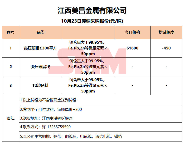 10月23日江西美昌 废铜采购报价