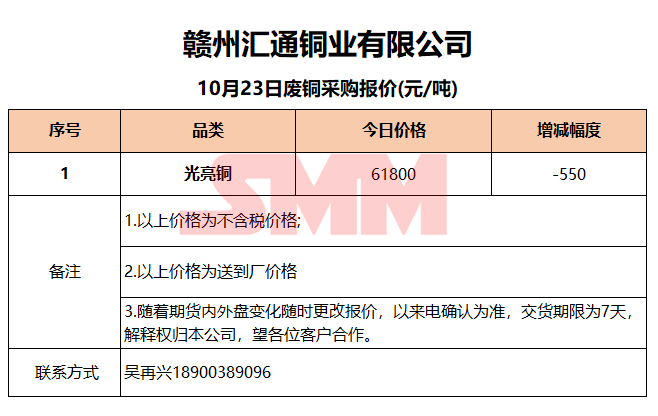 10月23日赣州汇通 废铜采购报价